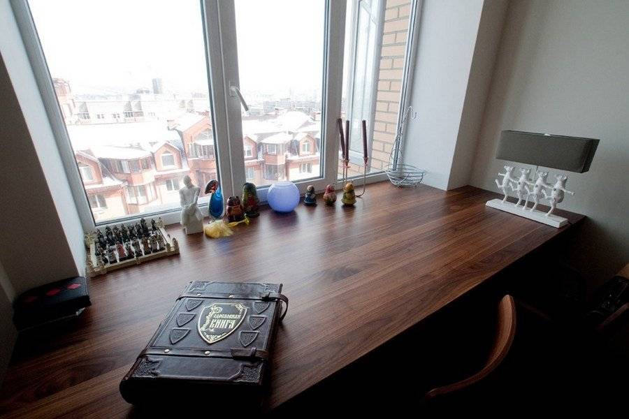 Столешница-подоконник для комнат малой площади позволит хозяевам высвободить место для установки тумбочки под видеоаппаратуру либо аудиотехнику. Не менее легко сделать рабочим столом подоконник, имеющийся на балконе. В итоге у домашнего мастера, например, по дереву, появится собственная отдельная мастерская, где он сможет работать над своими изделиями, не мешая прочим членам семьи.
