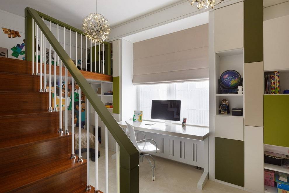 Освещение играет большую роль в развитии зрительного восприятия растущего организма. А новые веяния в дизайне позволяют совместить приятное с полезным. Например, совместить письменный стол с подоконником. Современные оконные блоки отлично сохраняют тепло и защищают от посторонних шумов со стороны улицы. Значит, стол для занятий вместо подоконника вдоль окна будет не только удобным и хорошо освещенным, но и безопасным местом для учебы.