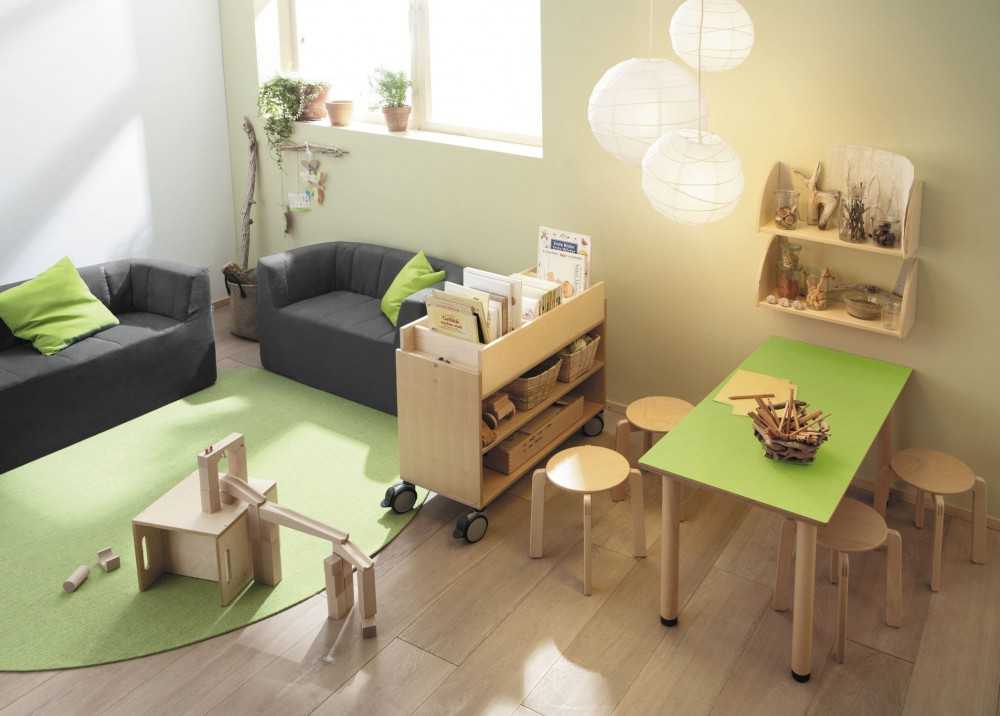 Для малыша подходит мебель с обтекаемыми формами и без выступающей фурнитуры, поскольку он очень подвижен, но еще не умеет контролировать свое тело.