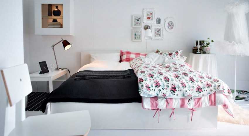 Для некоторых моделей характерно наличие изголовья, для кровати-подиума такая деталь не предусмотрена. Большинство вариантов, представленных в каталоге ИКЕА, имеют также встроенные выдвижные ящики, отсеки для хранения постельного белья, подушек, одеял.