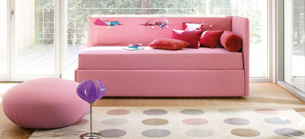 В том случае, если ортопедический диван предназначается для девочек, то лучше всего выбрать обивку с более нежными оттенками. Это может быть и розовый, и оранжевый, и красный цвета. А также изделие могут дополнять разные украшения, например, стразы или элементы вышивки.