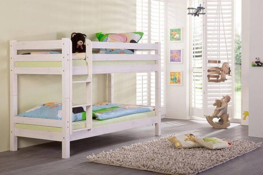Качественные варианты деревянных двухъярусных кроватей – модели «Мидал» и «Нордаль». Модель Мидал, включающая два спальных места, выделяется тем, что при стандартных габаритах в длину и ширину её высота всего 157 см, что отлично подходит в детскую комнату для дошкольников и школьников младших классов.