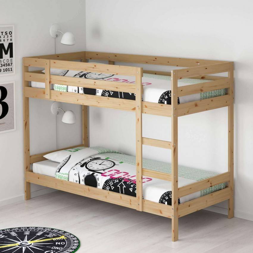 Деревянные двухъярусные кровати Икеа производятся из массива сосны, отличаются особой прочностью и надёжностью. Каркас кровати крепится на саморезы. Массив дерева подвергается зачистке от шероховатостей, обработке антисептиками, вскрытию прозрачными лаковыми средствами.