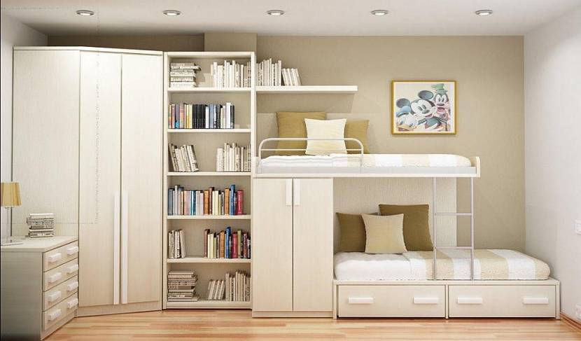Мебель для совместного использования. Двухъярусные кровати, большие гардеробы, длинные столы со множеством ящиков — подойдёт любая мебель, которую могут делить между собой 2 сестры