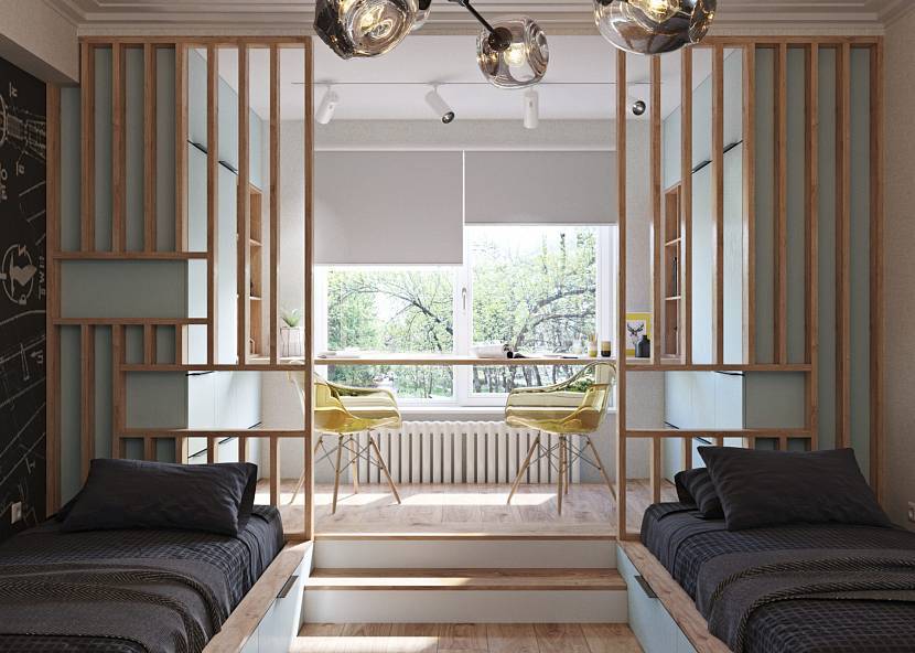 Красивая спальня для двоих мальчиков с самодельной мебельюИсточник kakpostroit.su