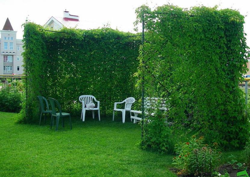 Зеленая комната хорошо отгораживает зону отдыхаИсточник gardengrove.ru