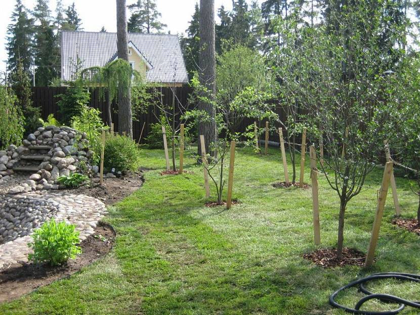 Фруктовые деревья стоят далеко от каменного бассейнаИсточник муп-апу.рф