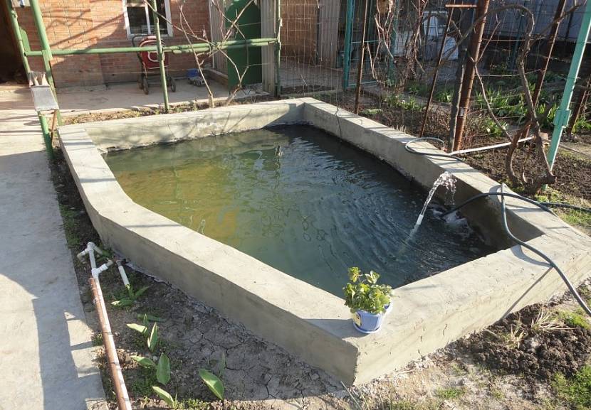 - Заливаем бетоном. Оставляем нужные отверстия для коммуникаций: слива, наполнения водой и пр.