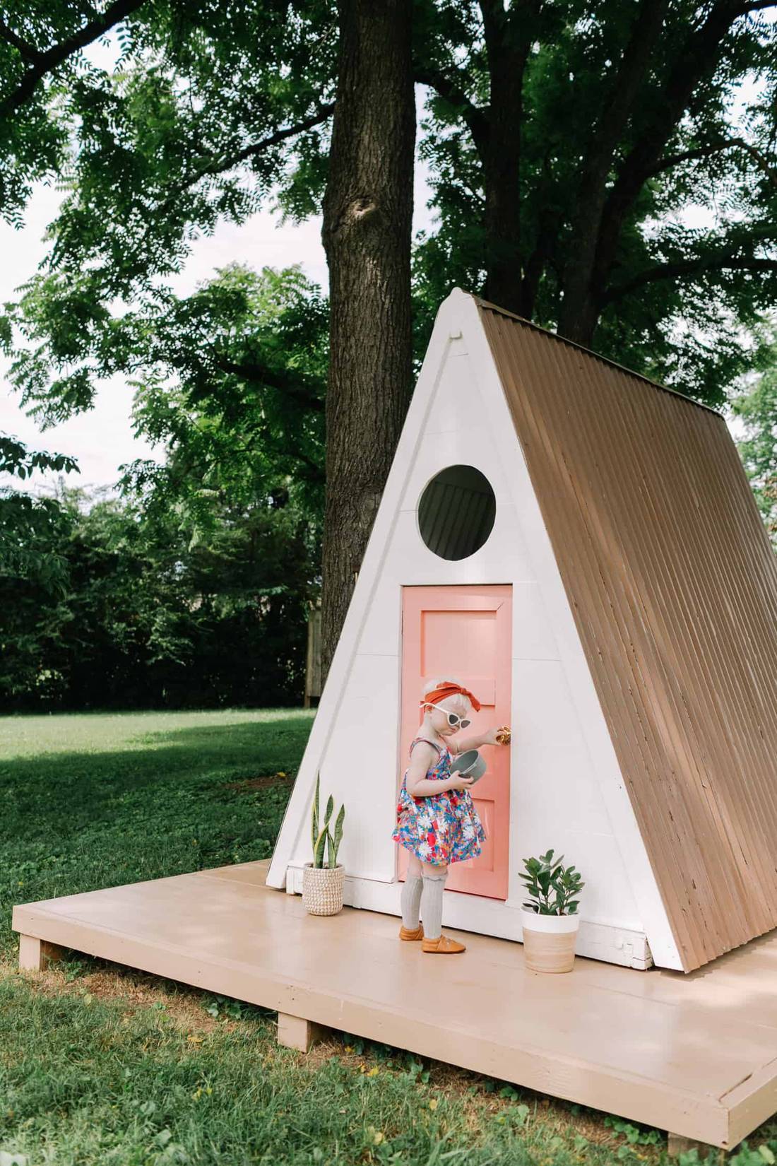 СоветЕсли вы собираетесь возвести конструкцию на даче, на которой проводите только выходные, вам лучше подойдет передвижной открытый домик, который вы сможете собрать и убрать на время своего отсутствия. А если вы живете в частном доме, то больше смысла имеет сделать стационарный — в нем ребенок сможет играть даже зимой.