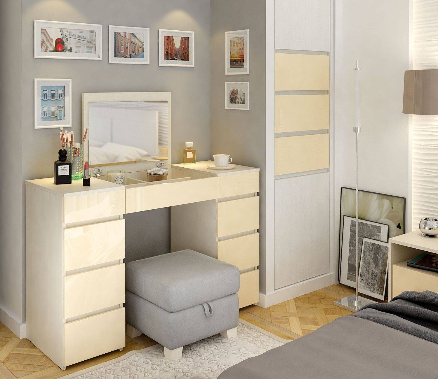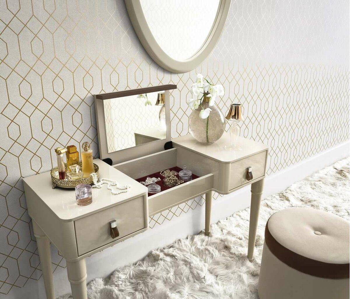 Туалетный столик — это привлекательный, а также удобный и практичный предмет мебели, на котором можно выполнять большинство домашних косметических процедур. Его также можно использовать в качестве небольшого письменного стола, если, например, нужно разместить ноутбук. Сегодня такой предмет мебели доступен в широком ассортименте. Оригинальное дополнение к пространству спальни в виде туалетного столика непременно придаст комнате очень эстетическую и роскошную атмосферу.