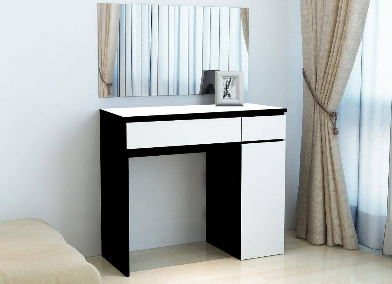 Столики с размерами 40 см в ширину и 80 см в длину – это компактный вариант мебели без тумбы. Бывает оснащен выдвижным ящиком для хранения принадлежностей, располагаемым под столешницей. Такие варианты идеально подойдут для небольшой спальни.