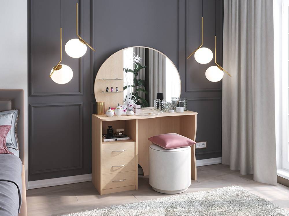 Варианты использования туалетных столиков с зеркалом и подсветкой