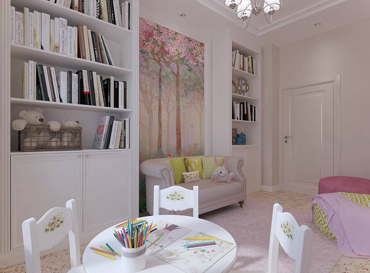 Для комнаты маленькой принцессы стоит выбирать обстановку нежных цветов.