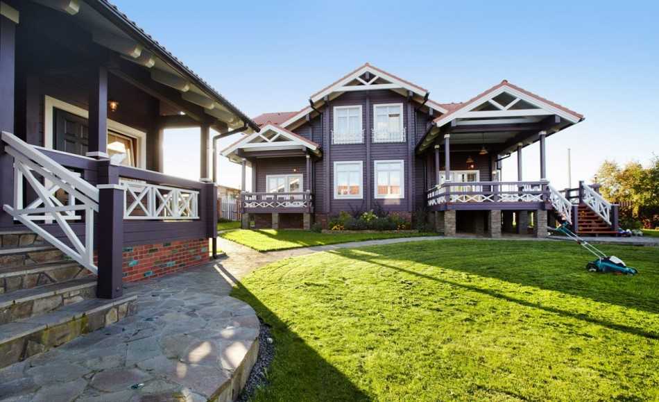 Внешне такой дом, как правило, выглядел либо, как одноэтажное строение с мансардой и террасой, либо, как двухэтажная постройка с местом для отдыха. Если размеры участка позволяли, в качестве последнего часто использовалась обустроенная в саду крытая беседка.