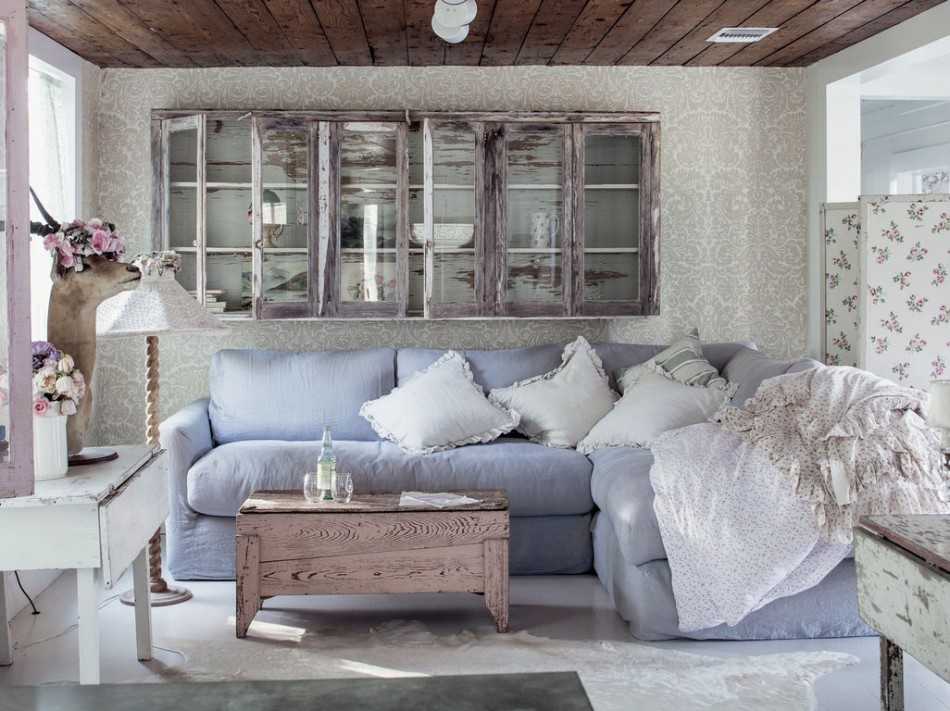 Интерьер в стиле прованс предполагает наличие натуральных материалов в отделке стен, пола и потолка