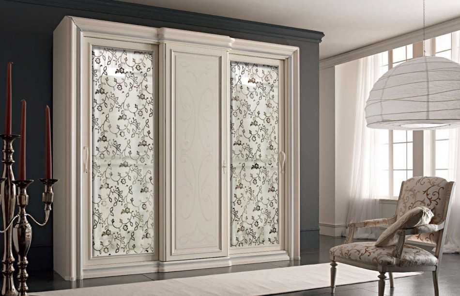 Обстановка просторной семейной спальни со старинным платяным шкафом.