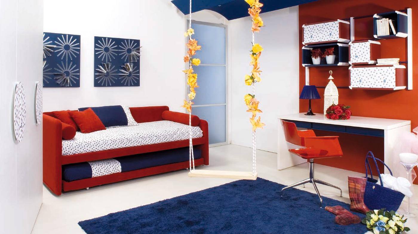 - Для спортивных подростков ближе будет мебель простых форм (стиль конструктивизм, авангард). Для меблировки комнаты отлично подойдут ровные диваны без подлокотников. Из обивки предпочтение лучше отдать плотному льну, хлопку. Цветовую гамму можно выбрать ярких насыщенных оттенков: синий, зеленый, оранжевый;