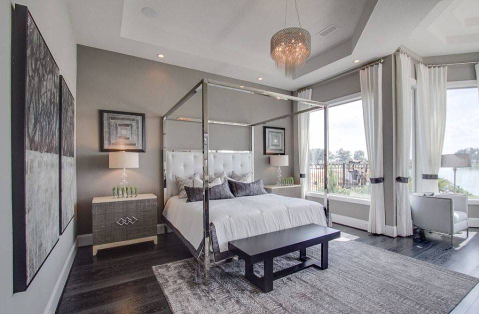 Современная спальня должна представлять собой светлое и уютное помещение для отдыха, желательно с большими окнами и хорошим освещением, которое хоть и разделяется на уютные уголки, выполняющие различные задачи, например, зону отдыха и туалетного столика, в целом остаётся открытым. Любые системы хранения рекомендуется умело маскировать за красивыми дверцами шкафов-купе или зеркальными фасадами. В отделке следует использовать натуральную ткань и качественную древесину