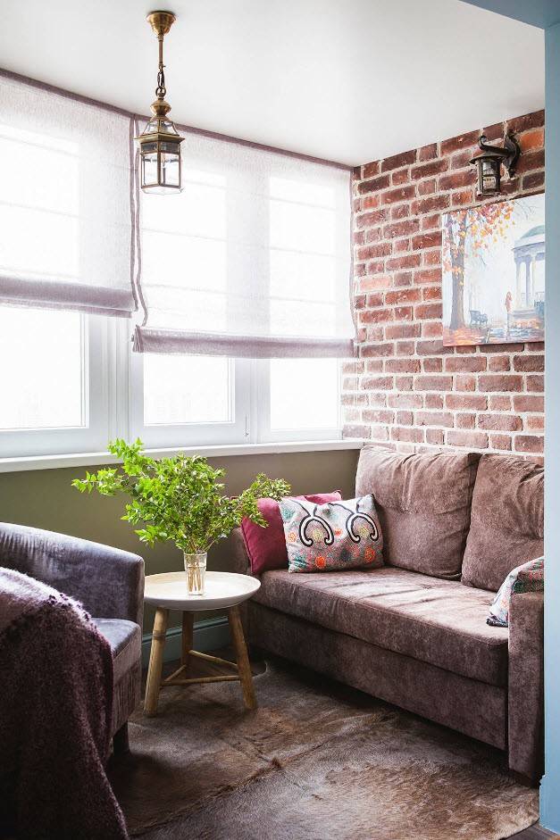 Так как перегородка между балконом и комнатой может быть не демонтирована ввиду особенностей строительства дома и запрета организаций на демонтаж, ее можно оригинально обыграть проем прямоугольной формы, красивую полуарку или арку. Этого можно добиться, демонтировав нижнюю часть оконного проема, где зачастую крепятся батареи центрального отопления.