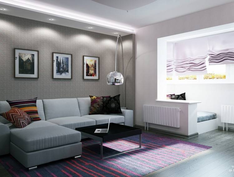 В маленьких квартирах дополнительная играет немаловажную роль. Этого можно достичь благодаря использованию в перепланировке объединения зоны лоджии с гостиной, разграничивая помещение на несколько зон. Преимуществом станет не только увеличенная площадь в гостиной, но и реализация самых неожиданных дизайнерских решений.