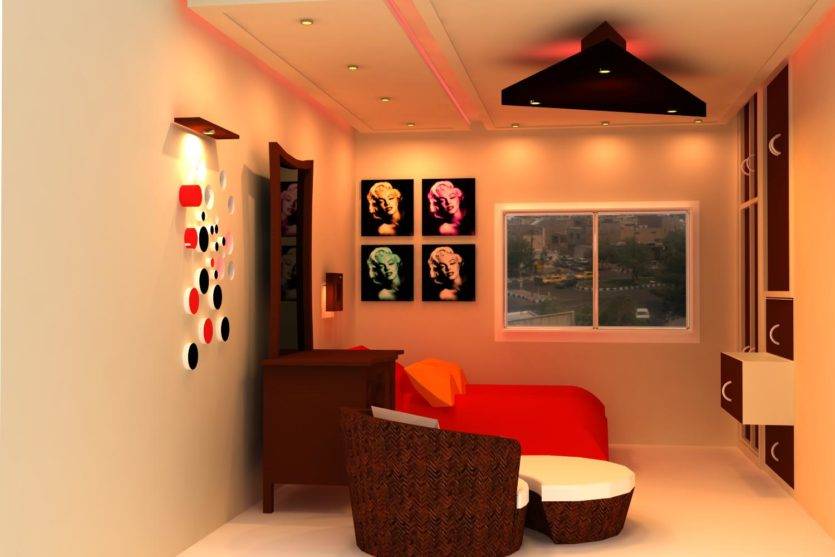 Помимо выбора расцветки и способа отделки стен, потолка и пола, следует позаботиться о качественном ярком освещении, а также грамотно расставить мебель.