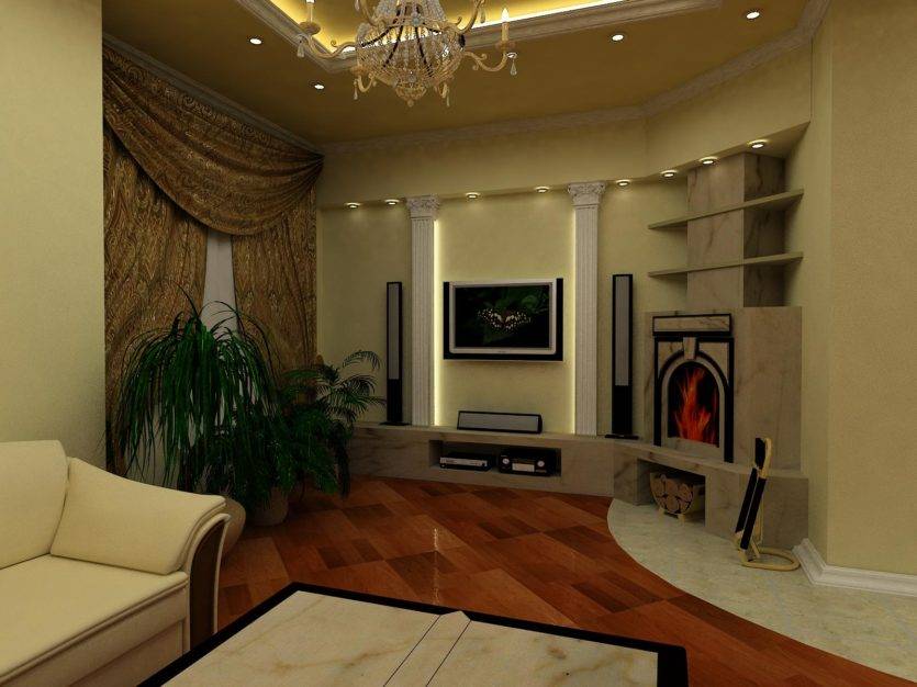 В гостиной даже самых скромных размеров можно не ограничивать себя при отборе цветовых композиций и декоративных элементов. Вполне удается обеспечить оптимальные условия для всех живущих в доме, однако интерьер перегружать недопустимо. Для визуальной корректировки недостаточной площади можно использовать максимум светильников. Если визуального исправления мало, применяется планировка гостиной с балконом, то есть объединяются эти два помещения.