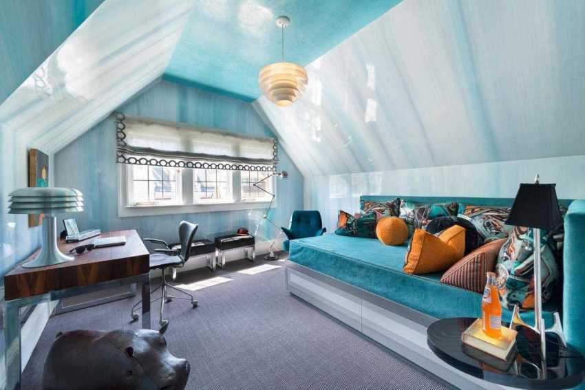 Специалисты не рекомендуют задействовать больше 3-4 разных красок и пользоваться в большом количестве броскими или тёмными вещами. Оформляя комнату, сконцентрируйтесь на удобстве и сохранении свободной площади. Активная лазурь не должна полностью превалировать, присутствуя максимум наполовину.