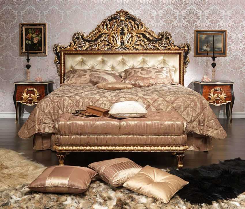 Кто не мечтал на минуту почувствовать себя представителем «голубых» кровей. Так вот, перед вами возможность создать королевскую опочивальню. В этом случае ситуация выглядит кардинально, наоборот, В приоритете остаётся чёрный тон, а золото играет роль декоративных деталей, но возможны небольшие отступления, в качестве драпировки окон или потолка.