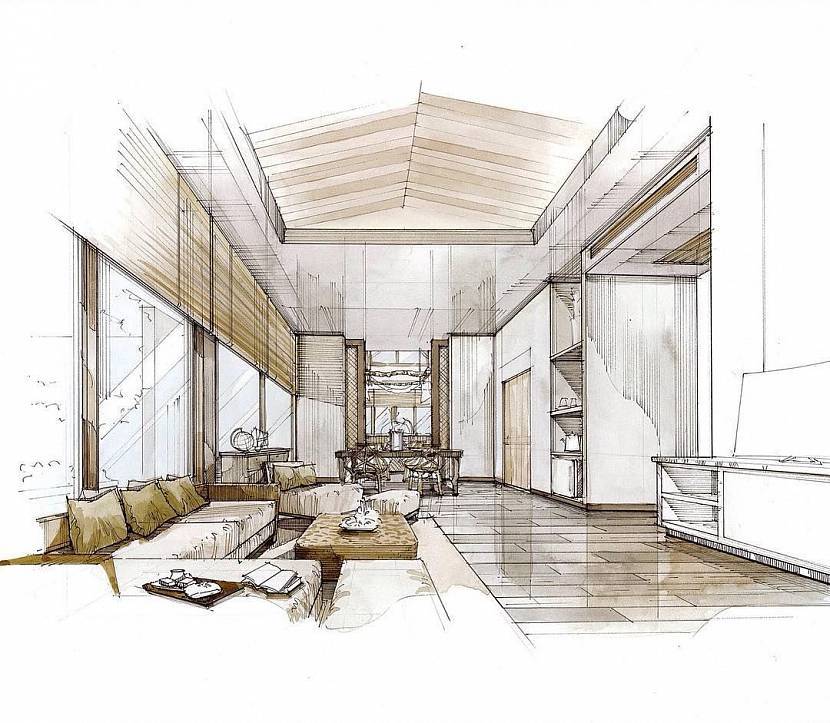 Для составления этого этапа одного эскиза недостаточно, важно рассмотреть обстановку на этапе рисования со всех сторон. В эскизе должны быть обнародованы возможные варианты расстановки мебели, отделка поверхностей