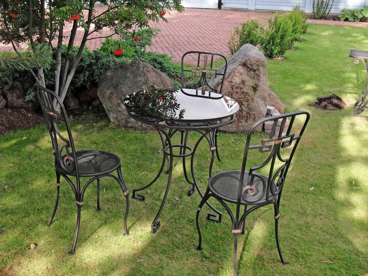 Изящная кованая мебель – отличное решение для оформления приусадебного участка.