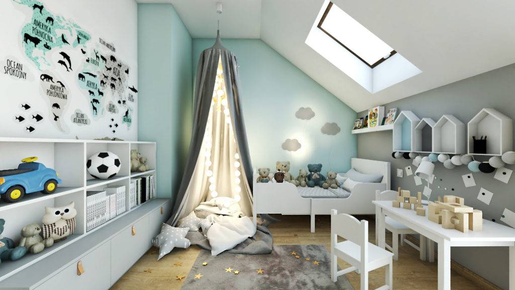 Первая — это спальная зона, которая состоит в основном из кровати. Она должна быть адаптирована к росту и возрасту. Многие магазины предлагают такие кровати, которые растут вместе с ребенком, поэтому на начальном этапе жизни они занимают мало места, а со временем — немного больше.