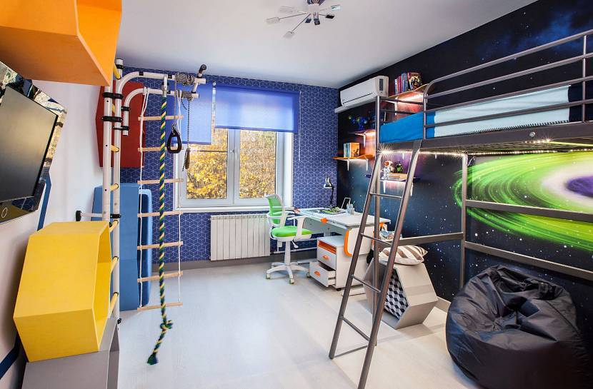Интересное оформление комнаты для мальчика в космическом стилеИсточник dekor.expert