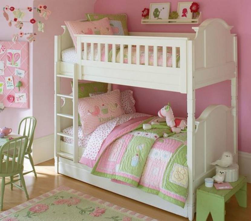 Для большинства девчачьих комнат подойдет пурпурный цвет и его оттенки. Розовые цвета хорошо сочетаются с салатовым.