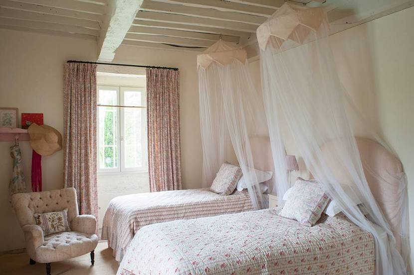 В женской комнате в духе прованса преобладает один очень приятный и обязательно натуральный цвет — дымчато-белый, оливковый, травяной, лавандовый, и может быть цветочный принт. Маленькую комнату сделают просторнее мелкие цветочки.