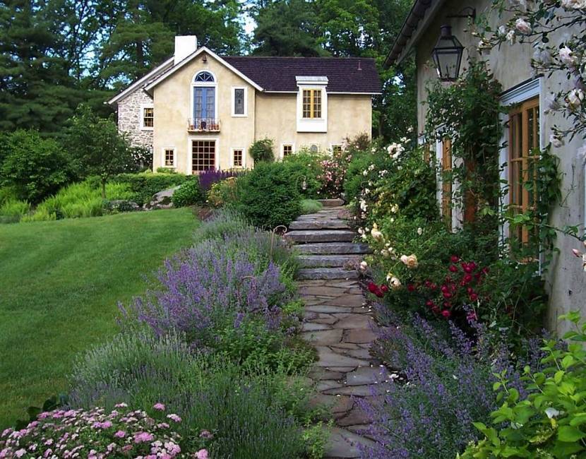 Этот стиль предполагает использование неэкзотических растений, преимущественно многолетних и неприхотливых. Распределяются они по территории двора так, чтобы он выглядел ухоженным, но естественным уголком живой природы.