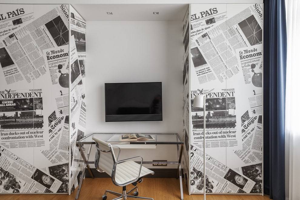 Если предметов в помещении будет не так много, сделайте акцент на их габаритах: позвольте себе внушительных размеров диван, проектор вместо телевизора, удобные крупные кресла.