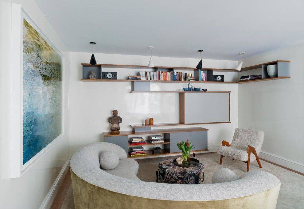 - Можно разместить открытые полки и установить на них несколько дизайнерских аксессуаров;