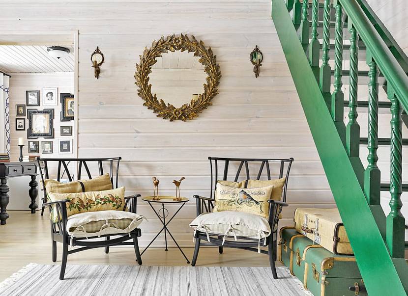 Конструкции в частном доме в стиле прованс, смотрятся изящно, элегантно и выполняются в пастельной палитре. Отдельные детали обладают потертостями и выцветшими участками. Для декора применяют патину и расписные рисунки с растительными мотивами. Лестница чаще всего имеет прямую форму и кованые или резные ограждения.