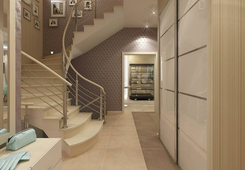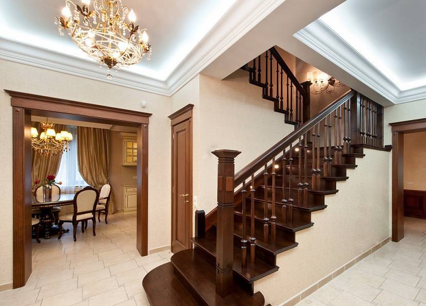 Об особенностях отделки прихожей с лестницей смотрите далее.