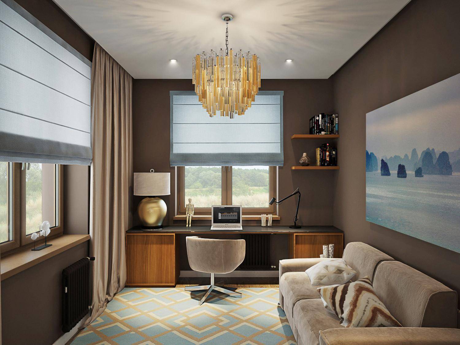 Освещение играет важную роль в планировании рабочего места. Это может быть люстра, бра, встроенные светильники, настольная лампа. Обязательно должно быть окно.
