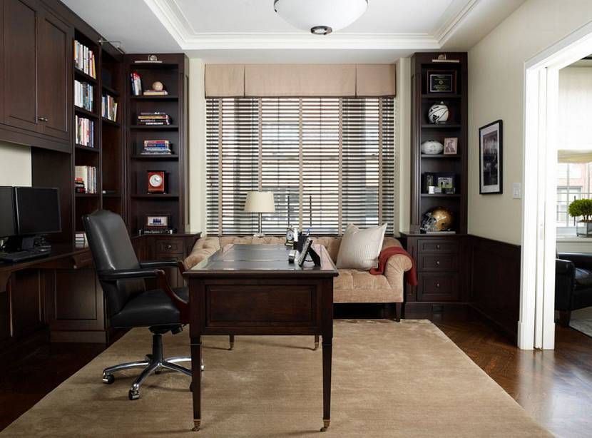 Существует несколько красивых идей дизайна кабинета, подчеркивающих рабочую обстановку.