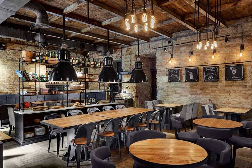 Основное правило при оформлении кофейни в стиле лофт — минимализм, сочетание грубых текстур и чистых линий. Здесь требуется хорошее чувство нюанса при оформлении зала. Акцент на отдельных деталях