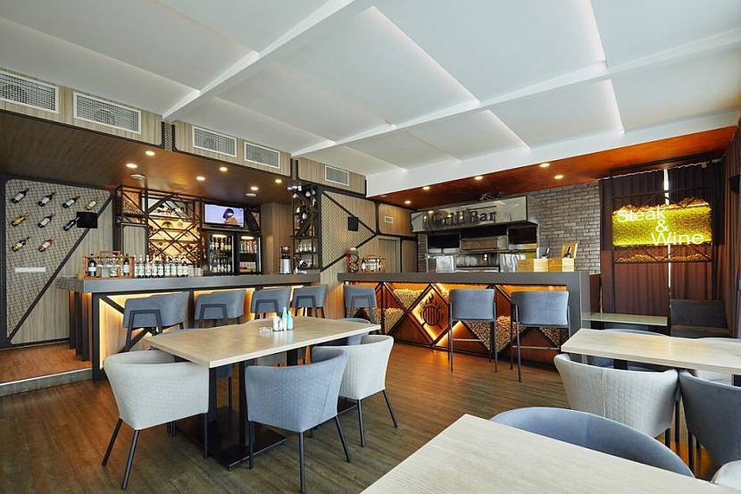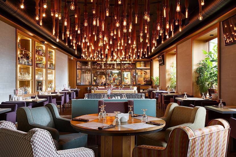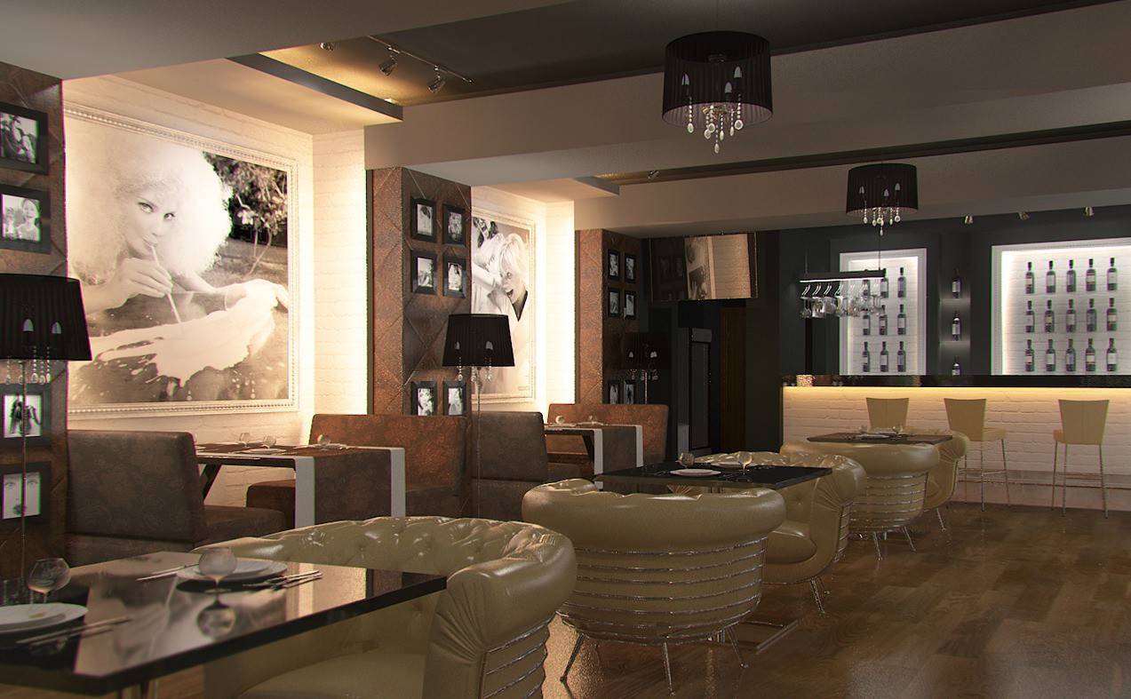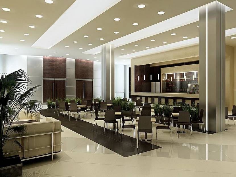- Выбрать мебель и отделочные материалы с отменными эксплуатационными свойствами. Столы, кресла, диваны, барная стойка и стулья, напольные покрытия, двери с высокой степенью износостойкости долгое время не утратят первозданный вид, несмотря на высокую посещаемость заведения.