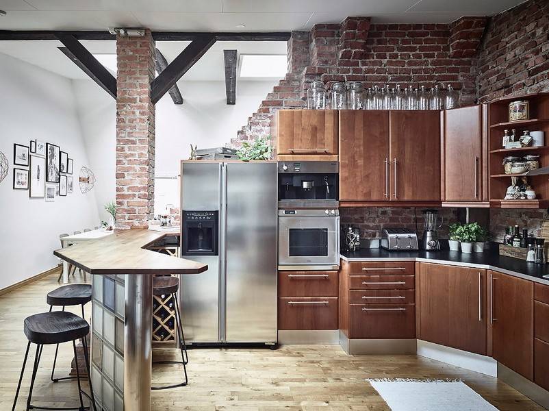 Кухня-гостиная, оформленная в гранжеИсточник happymodern.ru