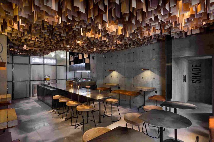 Интерьер с такой необычной отделкой однозначно привлечет к себе внимание посетителей.