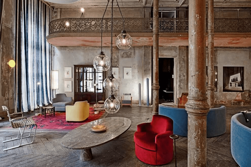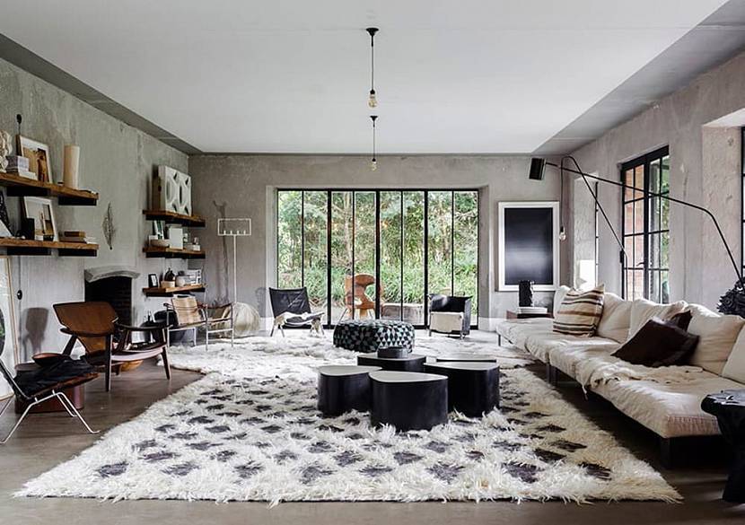 Громадная гостиная, оформленная по правилам гранжаИсточник happymodern.ru