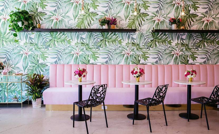 Модным трендом в оформлении кафе и ресторанов является декорирование цветочным принтом, его можно применять для отделки стен и создания красивой мебели.