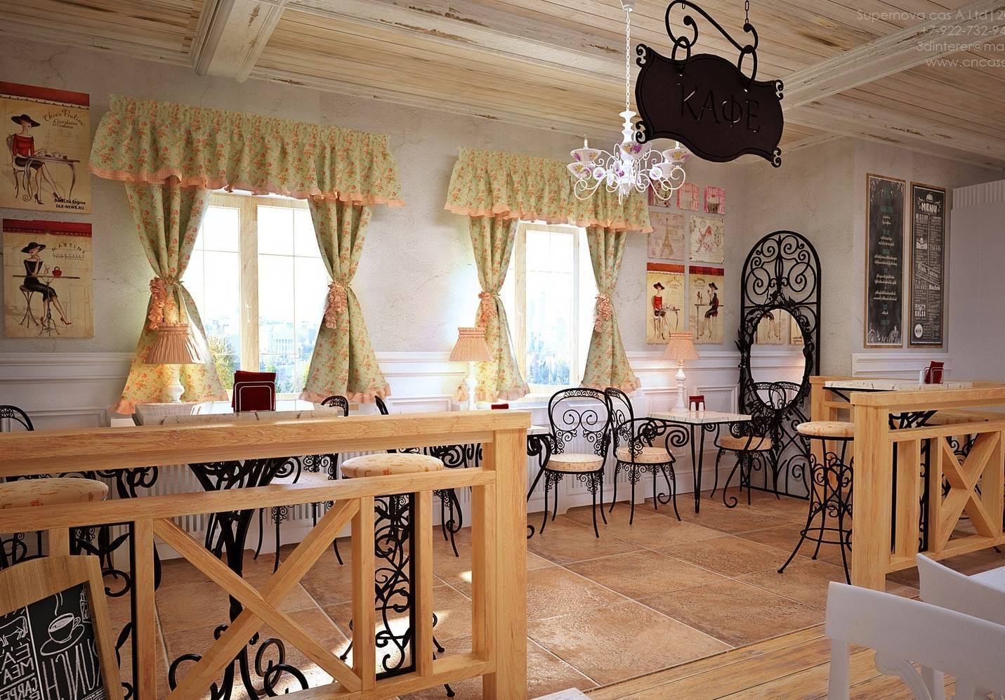 Наиболее оптимальный вариант оформления зала кофейни — прованс. Этот интерьер можно создать собственными руками. Принцип прост:
