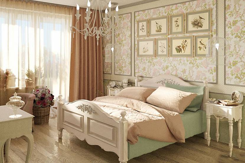 Девиз стиля — романтика. Для завершения образа нужны материалы с растительным рисунком, живые растения и легкие шторы.