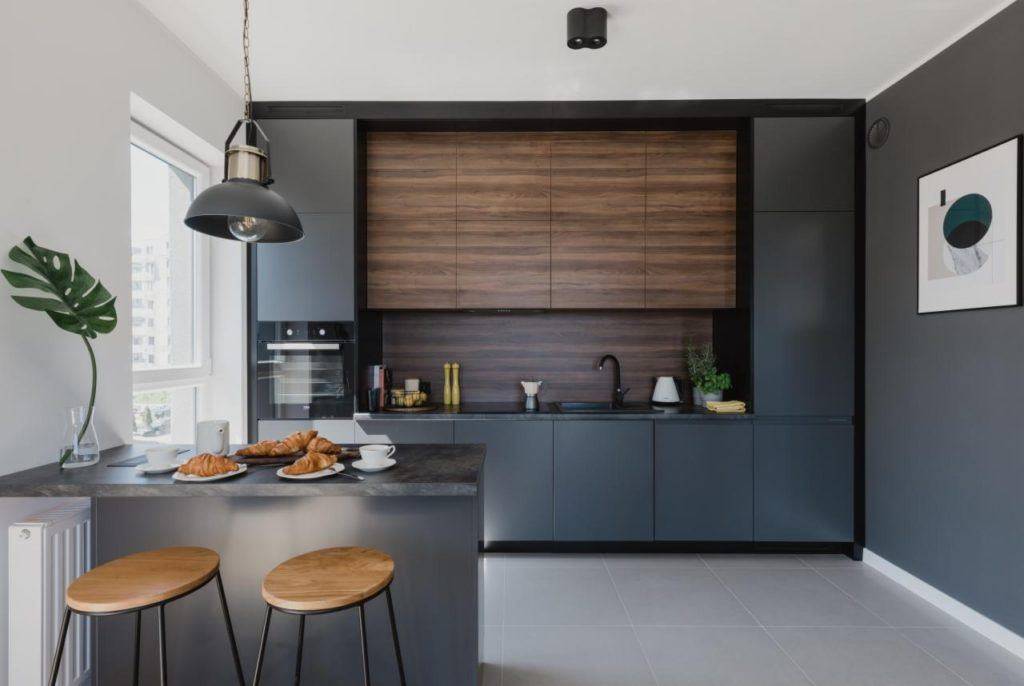 Также модно размещать бытовую технику на уровне глаз. Какую кухонную технику выбрать в 2020 году? Прежде всего, с простой формой, темными цветами и ненавязчивыми декоративными элементами. В случае кухонной компоновки 2020 с полной стенкой шкафов, без углубления под раковину, они обычно располагаются в центральном месте непосредственно за кухонным островком. В ситуации, когда на кухне запланировано углубление, приборы размещаются сбоку, справа или слева. Минималисты и любители порядка могут спрятать кухонную технику, такую как холодильник или духовку, в шкафу за дверью или в мебельной стойке, закрытой раздвижной дверью.